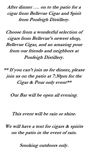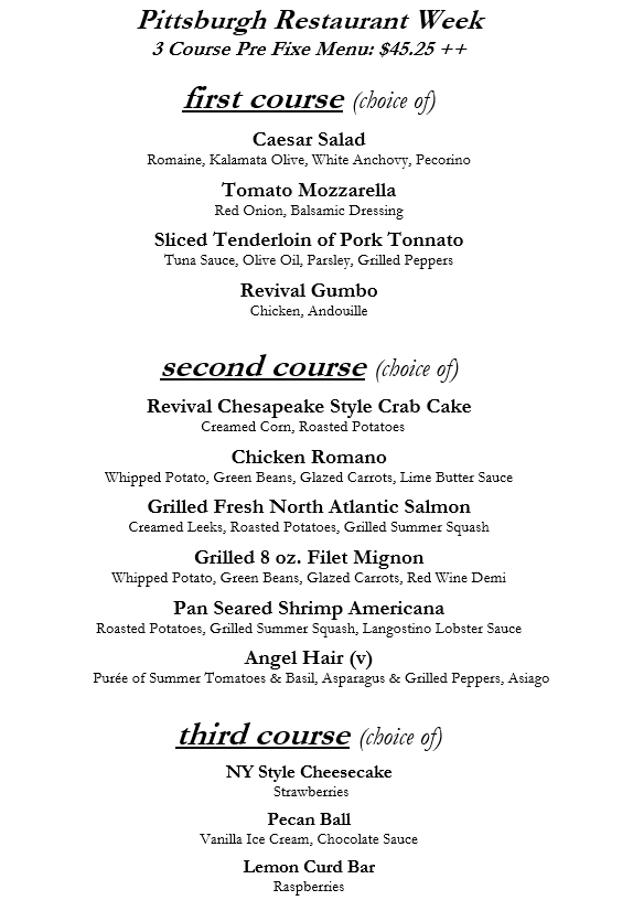 This is a prepaid event. $42 per person (plus tax & gratuity). Please reserve online or call to book. (412)223-5715.
