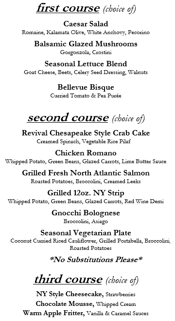 Vegetarian selections are available upon request - please note when making your reservation